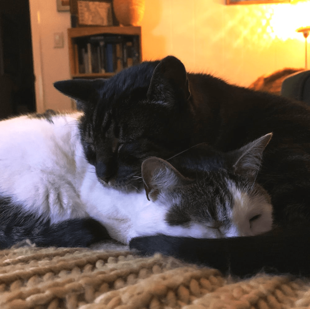 Whiskey Bearcat and Stella Kitten, the two comfiest cats I know.