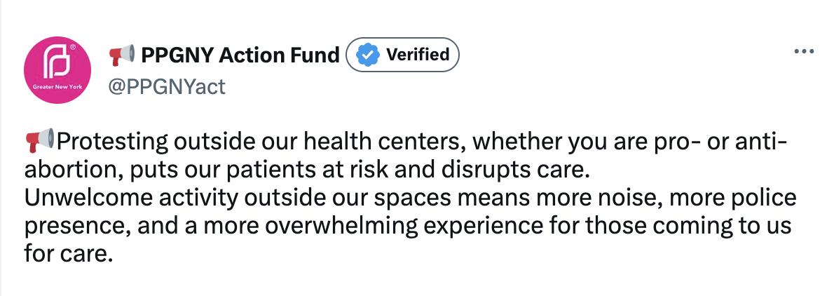 GHGHGHGHGHGHGHGH. I’ve seen several recent reports concerning a group called NYC for Abortion Rights, which has been disrupting patient care with their “clinic defense” demonstrations, even though they’ve been asked not to. (CORRECTION: this is not Rise and Resist NYC, the bunch who thought “fuck Texas” was a cool and bold organizing statement, apologies!)