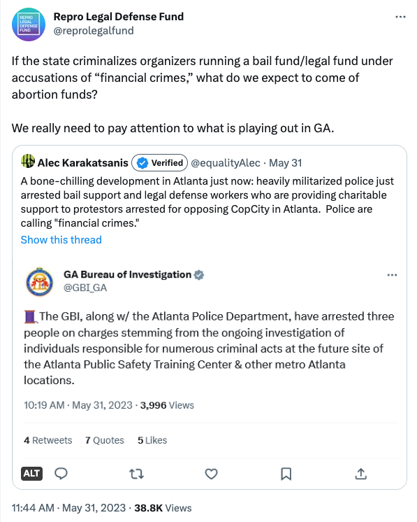 This tweet from the Repro Legal Defense Fund highlights how our fights for justice are all intertwined: