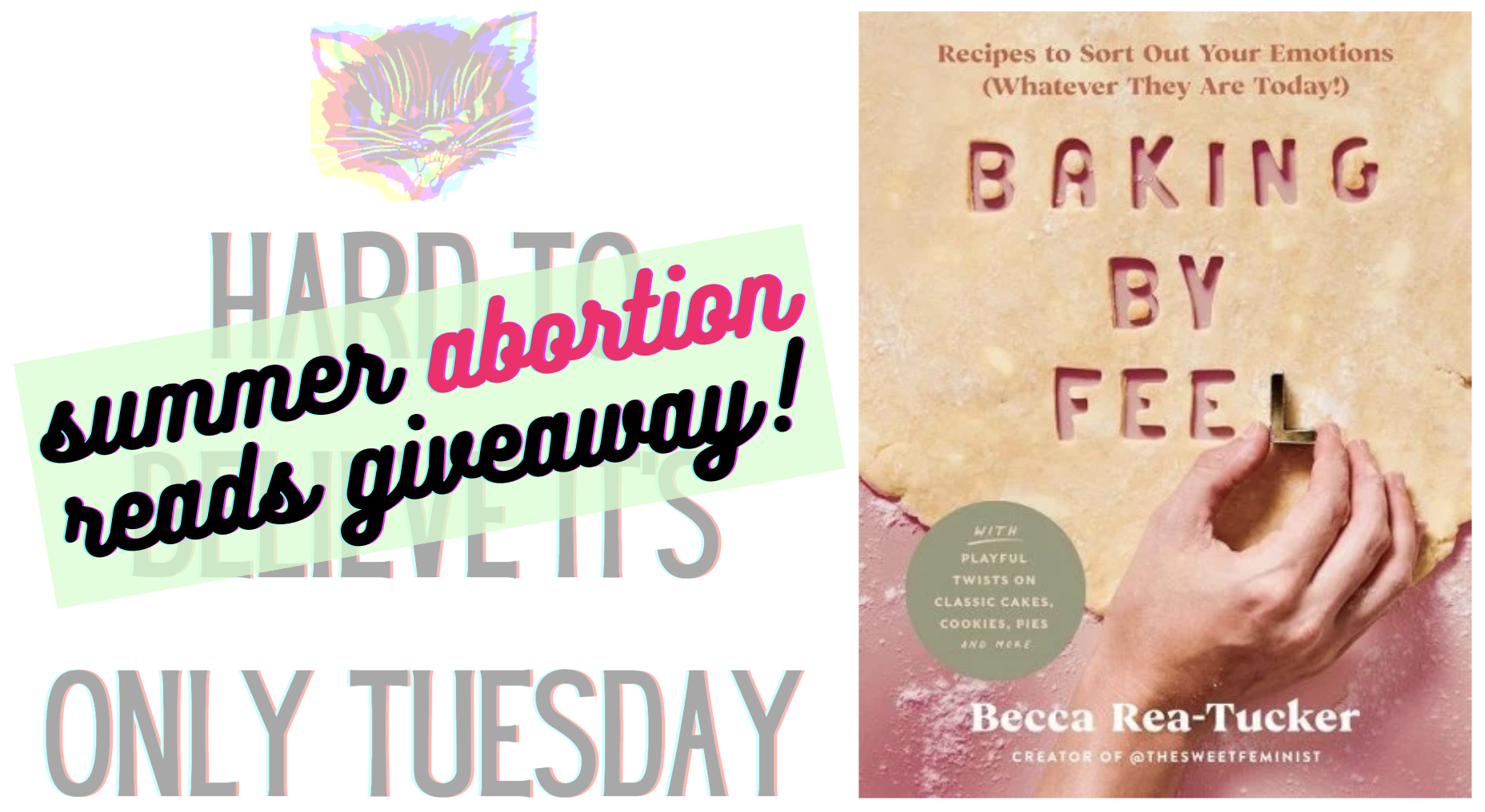 The “Sweet Feminist” is Austinite Becca Rea-Tucker, a baker and writer known for saying it with cake. (And by “it” I mean: righteous, pro-abortion affirmations!) Listen to the Feminist Book Club interview with Becca, who shares her abortion story in Baking By Feel. If there is another cookbook that includes an abortion story … well, I don’t know what it is! Becca’s offering a signed copy and some fun pro-abortion merch to this week’s winner.
