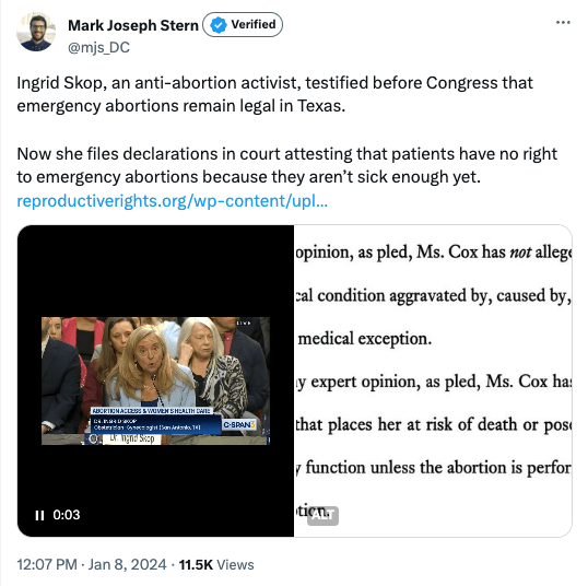 The background: this explainer from The 19th is useful, but I’ll try to sum up the sum-up. There are two cases, one out of Texas and one of out Idaho, concerning disparities between federal law, which protects the provision of emergency abortion care, and state laws, which may ban emergency abortion care — and put doctors at risk of prosecution if they provide such care in violation of state laws. Last week, the Fifth Circuit ruled that Texas’ abortion bans supersede federal laws, allowing the state to ban emergency abortion care in conflict with federal law (i.e., allowing Texas to prosecute medical providers it believes don’t let pregnant patients die or get close enough to dying).