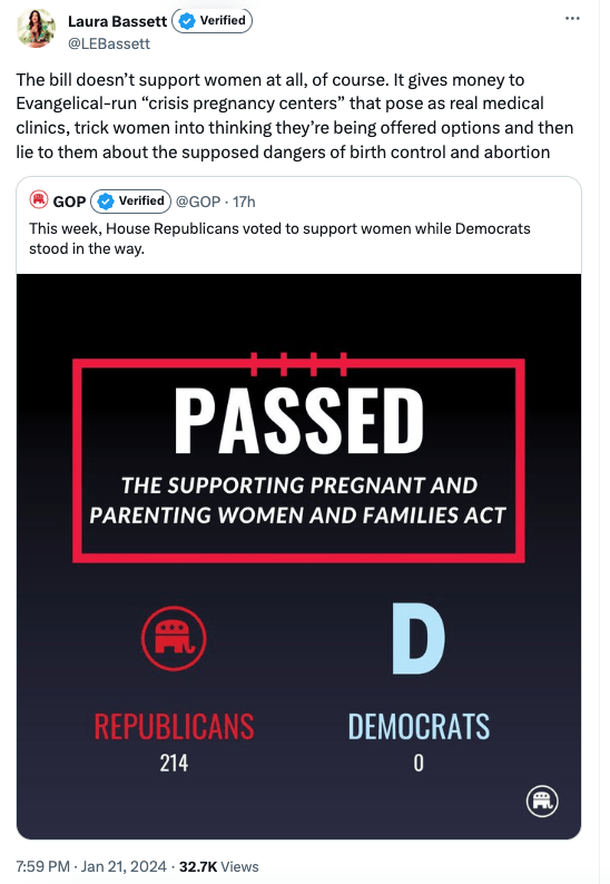 Goodnight and good dunk — The Cut’s Laura Bassett notes that the GOP’s “supporting pregnant and parenting women and families act” is anything but: