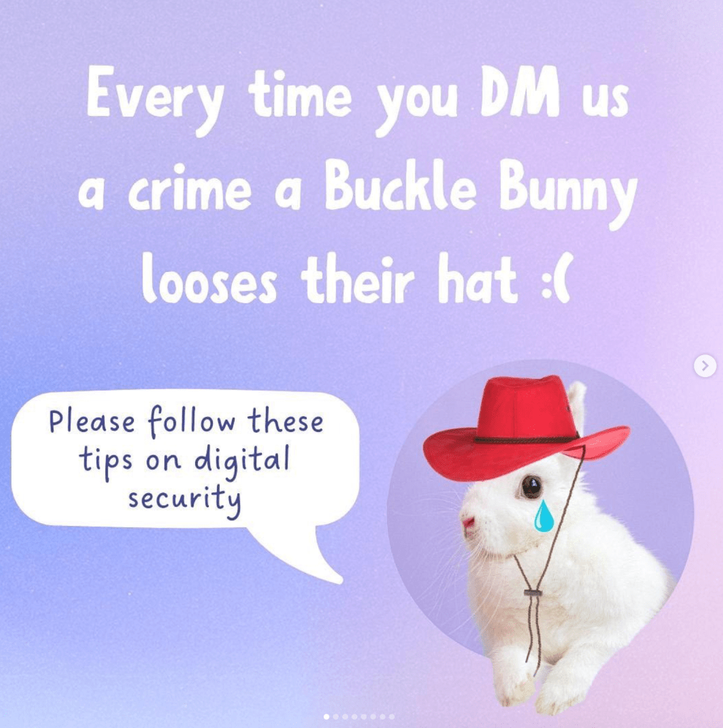 Here’s the Buckle Bunnies Fundreminding folks to keep ourselves and our favorite abortion funders safe by being mindful about digital security!