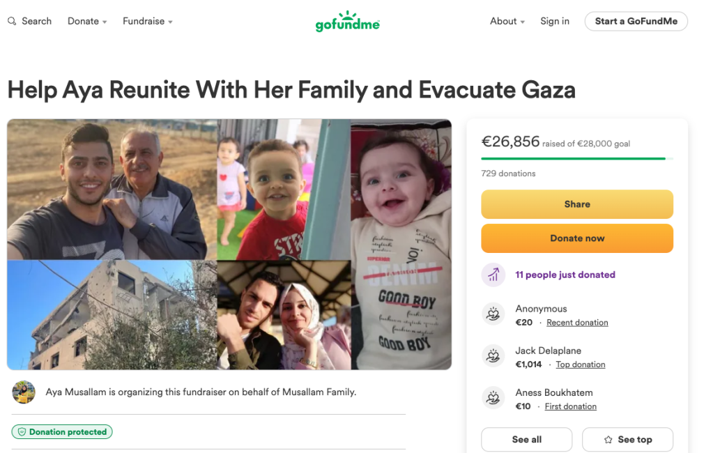 Supporting families separated by genocide is a reproductive justice issue, which is why I’m fundraising for Aya Musallam and her campaign to reunite her family, who have been separated by Israel’s attacks on Gaza. They’ve lost their family home, and they’re spread out all over the world. Right now, Aya’s working to get her sister Lara, her brother-in-law, and her nephews Ayham (2 years old) and Yaman (4 months old) to safety and back together with Aya, her mom, and her little sister, who are in Russia, and Aya’s brother and father, who are in Egypt.